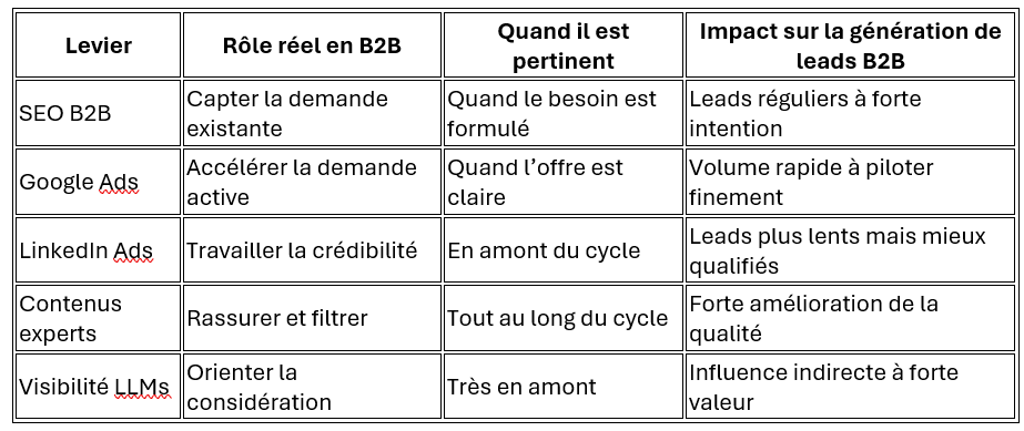 Lecture stratégique des leviers de génération de leads B2B